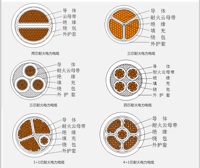 執(zhí)行標(biāo)準(zhǔn) 耐火電纜產(chǎn)品執(zhí)行GB/T12706-2020和GB/T19666-2019標(biāo)準(zhǔn),等效于IEC60502-2004.耐火性特性符合國(guó)家標(biāo)準(zhǔn)GB/T19216.11-2003和IEC60331.11。 產(chǎn)品用途 耐火電纜就是在火焰燃燒情況下能夠保持一定時(shí)間安全運(yùn)行的電纜。耐火電纜適用于高層建筑、油田、電站、電廠、礦山、化工、地鐵等要求防火安全條件高的場(chǎng)合,又是應(yīng)急電源、消防泵、電梯、通訊型號(hào)系統(tǒng)的理想電纜。 使用特性 額定電壓:0.6/1kV 敷設(shè)時(shí)的環(huán)境溫度應(yīng)不低于0℃ 敷設(shè)時(shí)的允許彎曲半徑: 無鎧裝層的電纜,應(yīng)不小于電纜外徑的10倍 有鎧裝層的電纜,應(yīng)不小于電纜外徑的12倍 電纜滿足GB/T19216.11-2003及IEC331規(guī)定的耐火特性要求 型號(hào)及名稱
