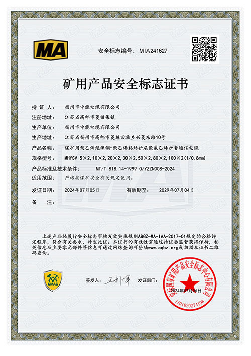 礦用產(chǎn)品安全標(biāo)志證書(shū)MHYSV 5X2,10X2,20x2,30x2,50x2,80X2,100X2(1/0.8mm)